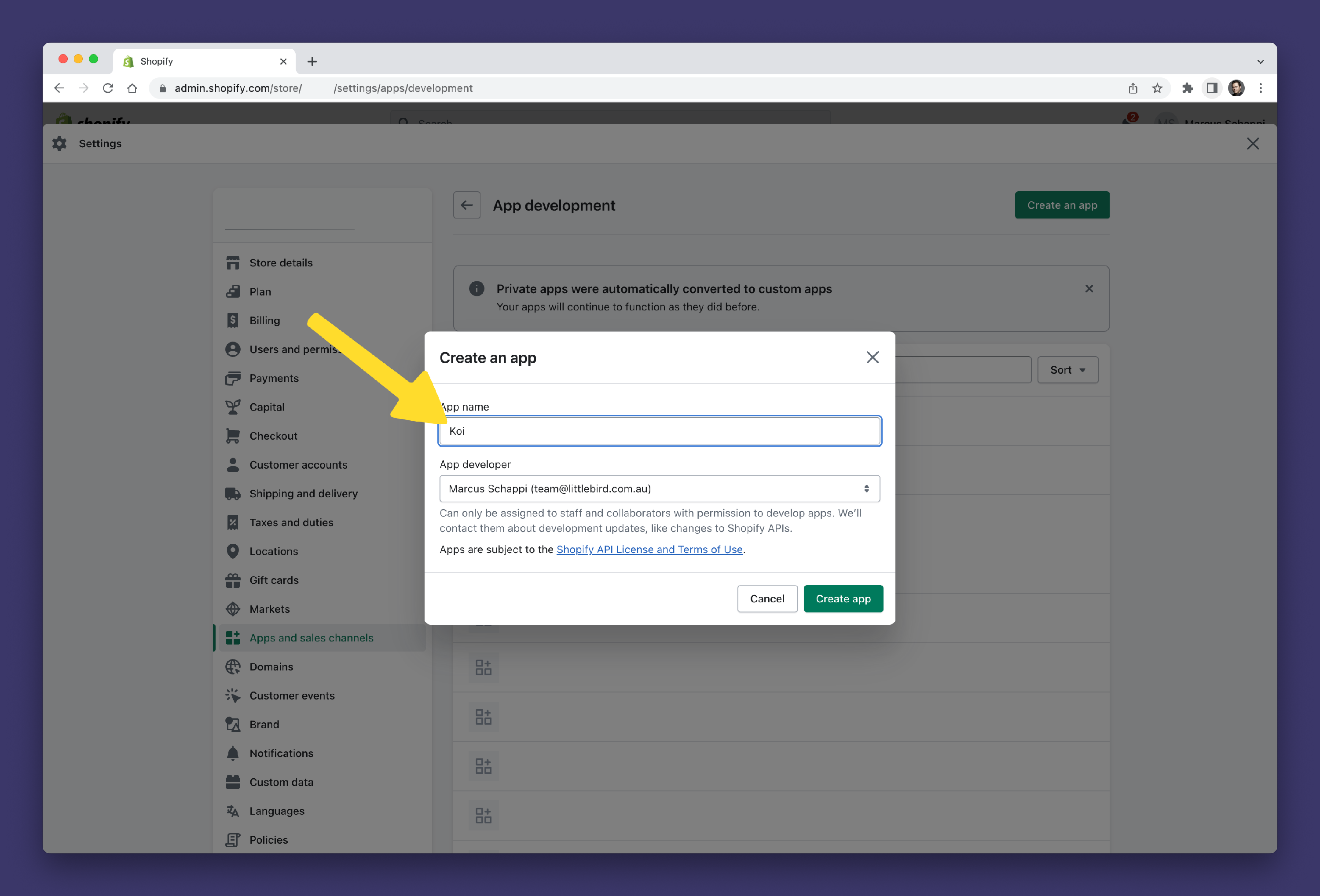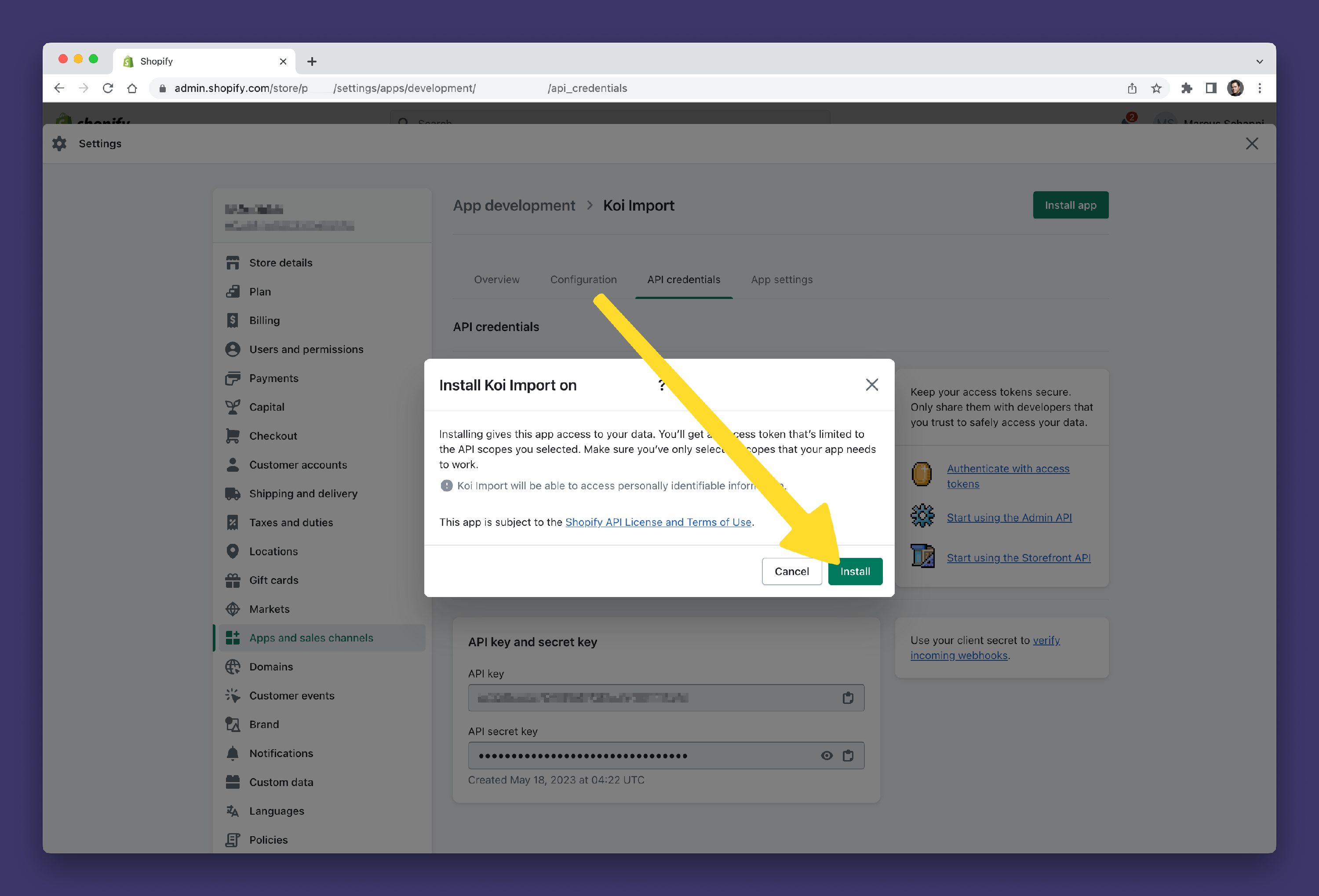 Step 2: Adding your Shopify Custom App to Koi