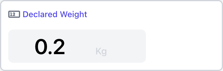 The Declared Weight field is the weight we will provide to your shipping carriers. You can set the Declared Weight by manually entering it in the field, or by clicking on Scales 5️⃣ or Calculated Weight 4️⃣. The weights are in Kilograms.