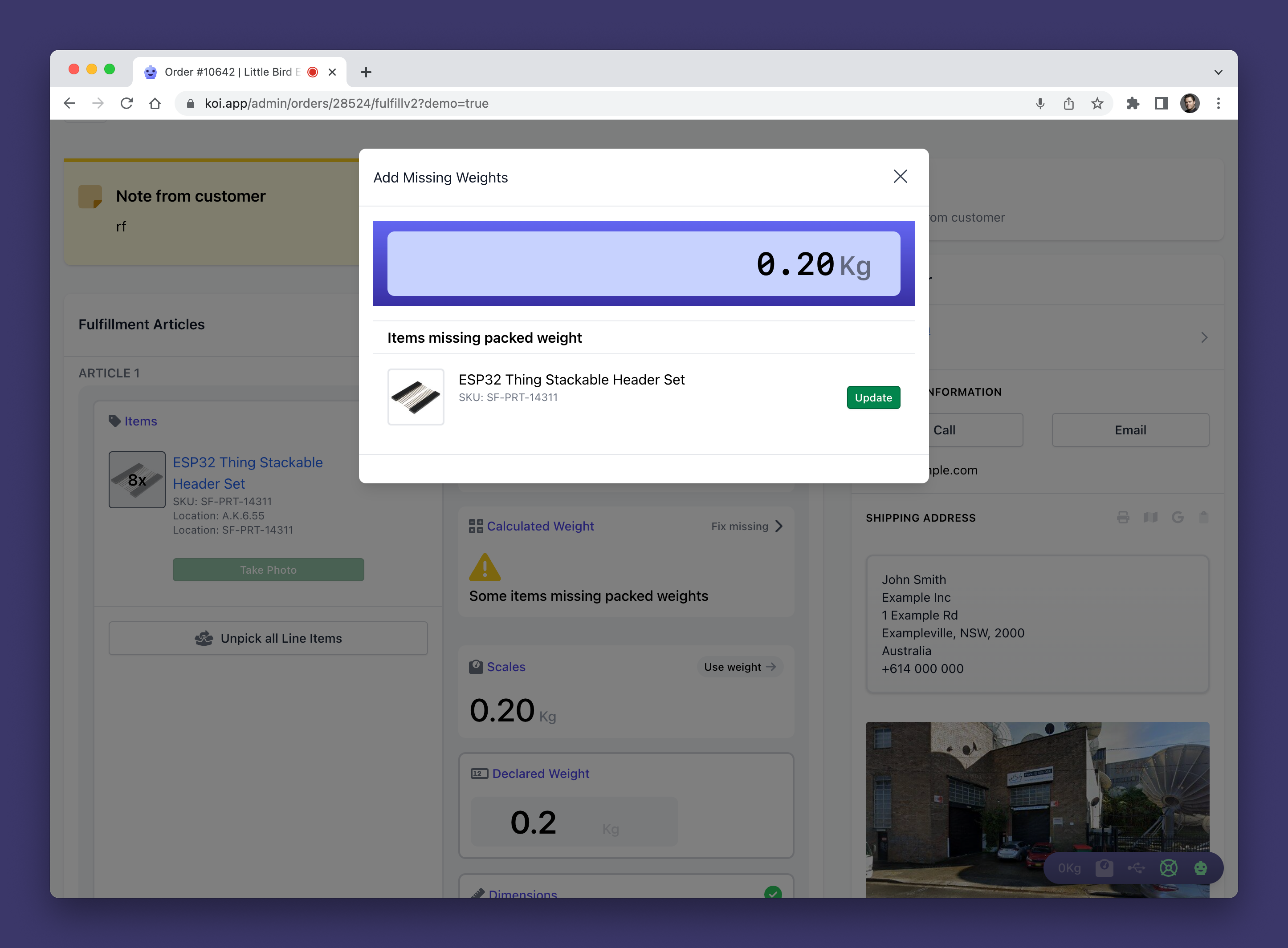 The Calculated Weight 4️⃣ is Koi's prediction of how heavy a Fulfillment Article should be.
