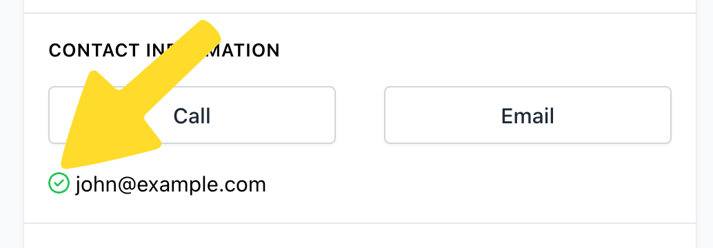 If an email address has appeared in a databreach, we include a green checkmark in a circle next to teh email address.
