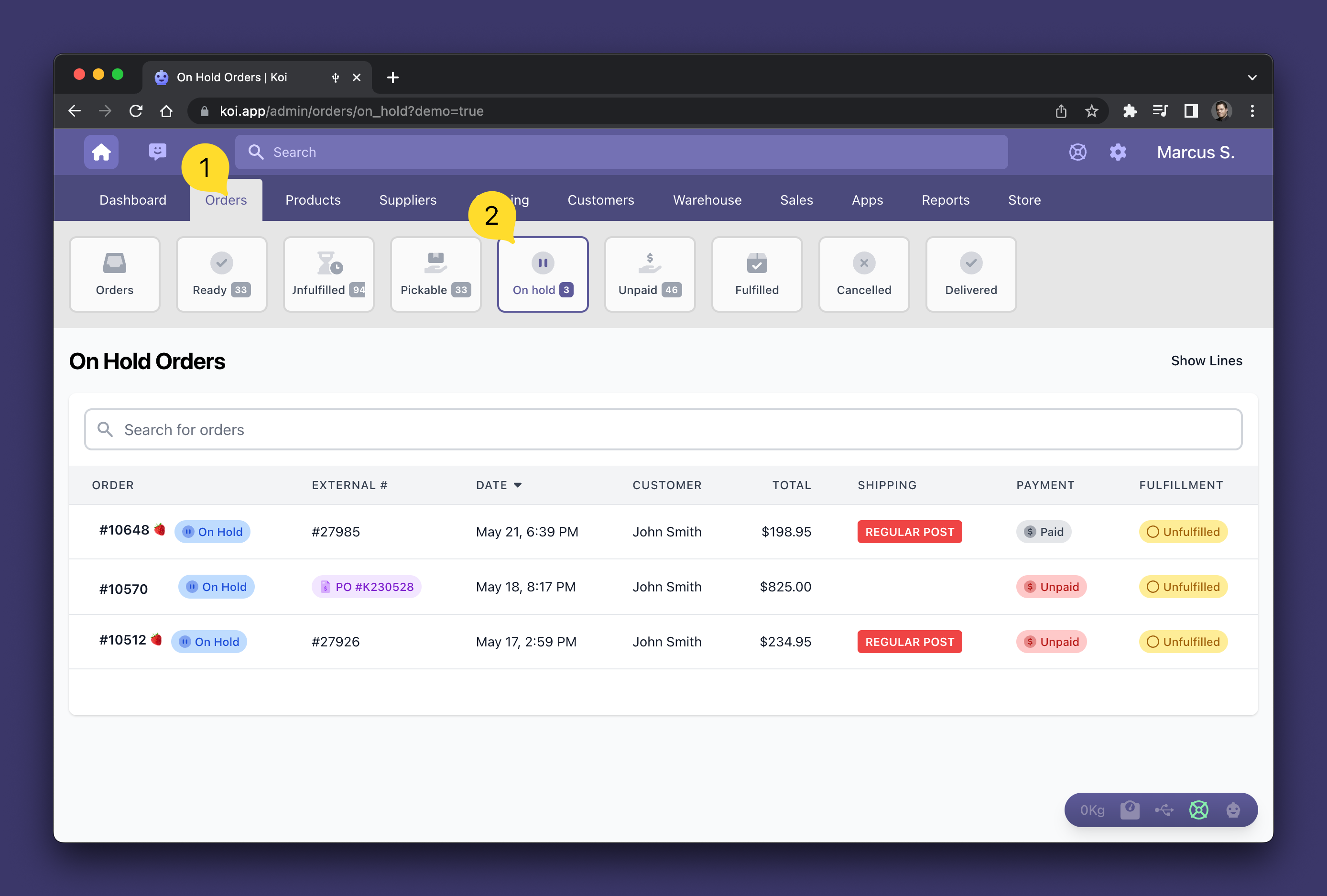 You can also place an order on hold from the Order lists pages by right mouse clicking on the order in question, and clicking Hold.