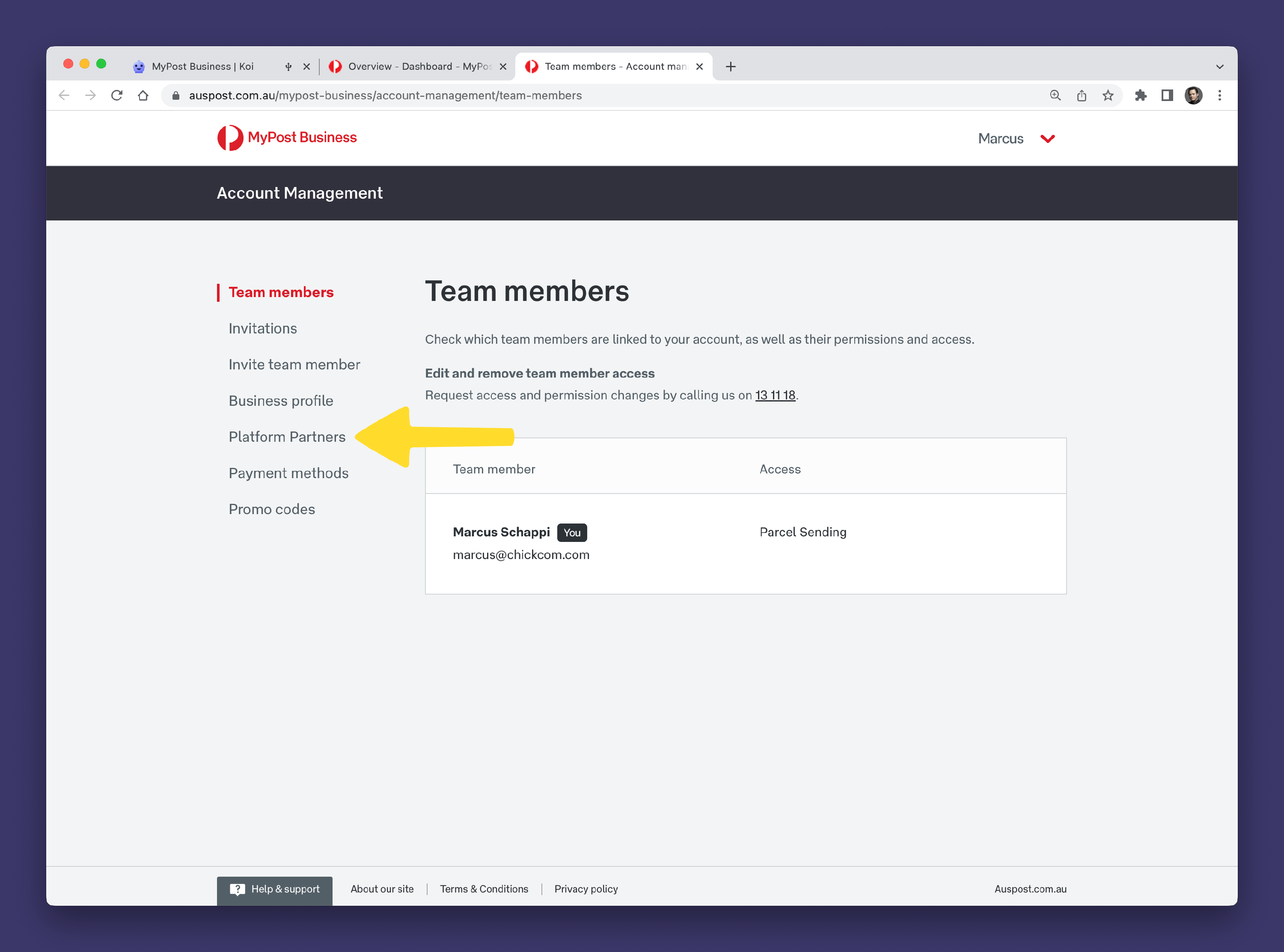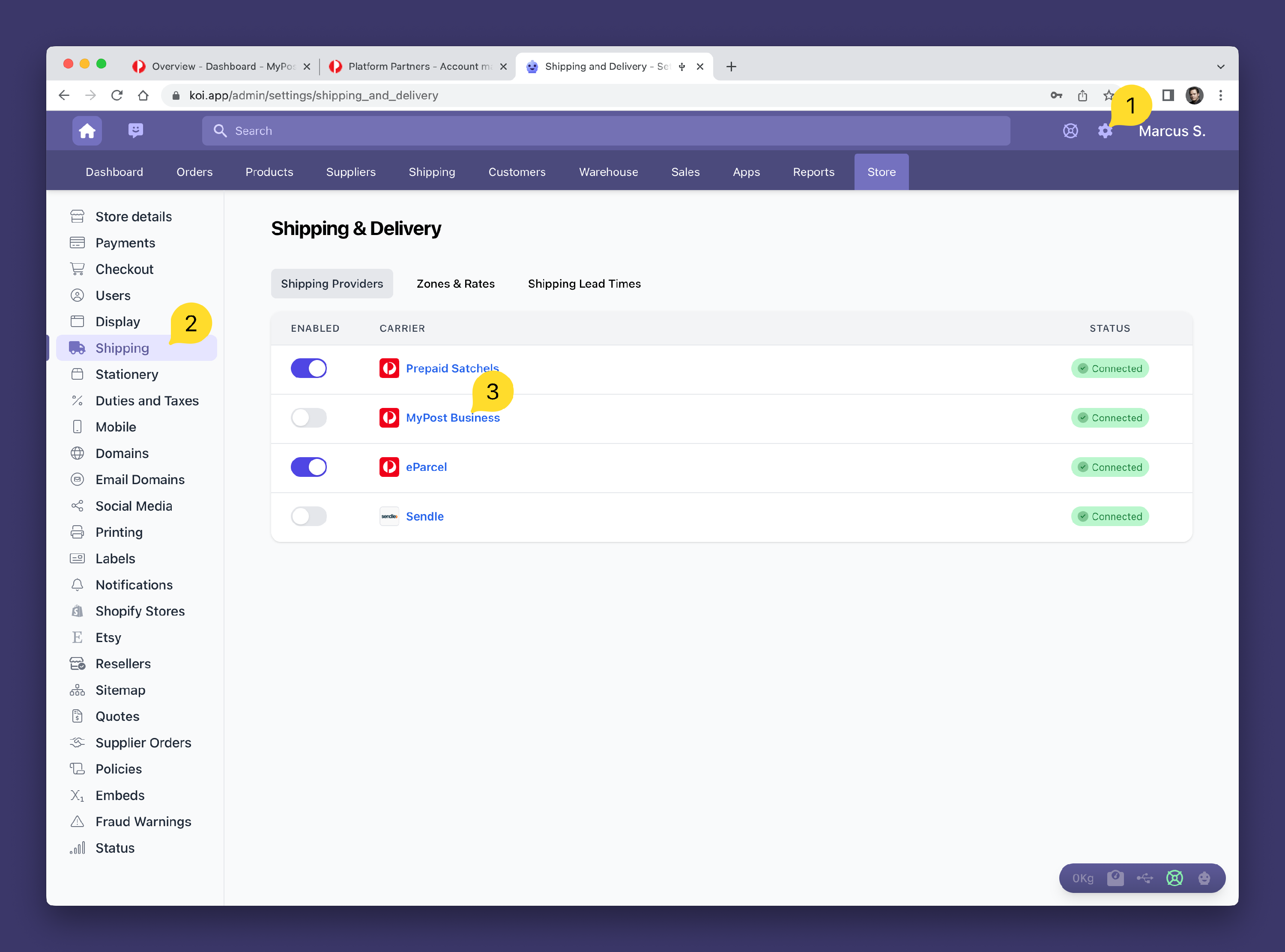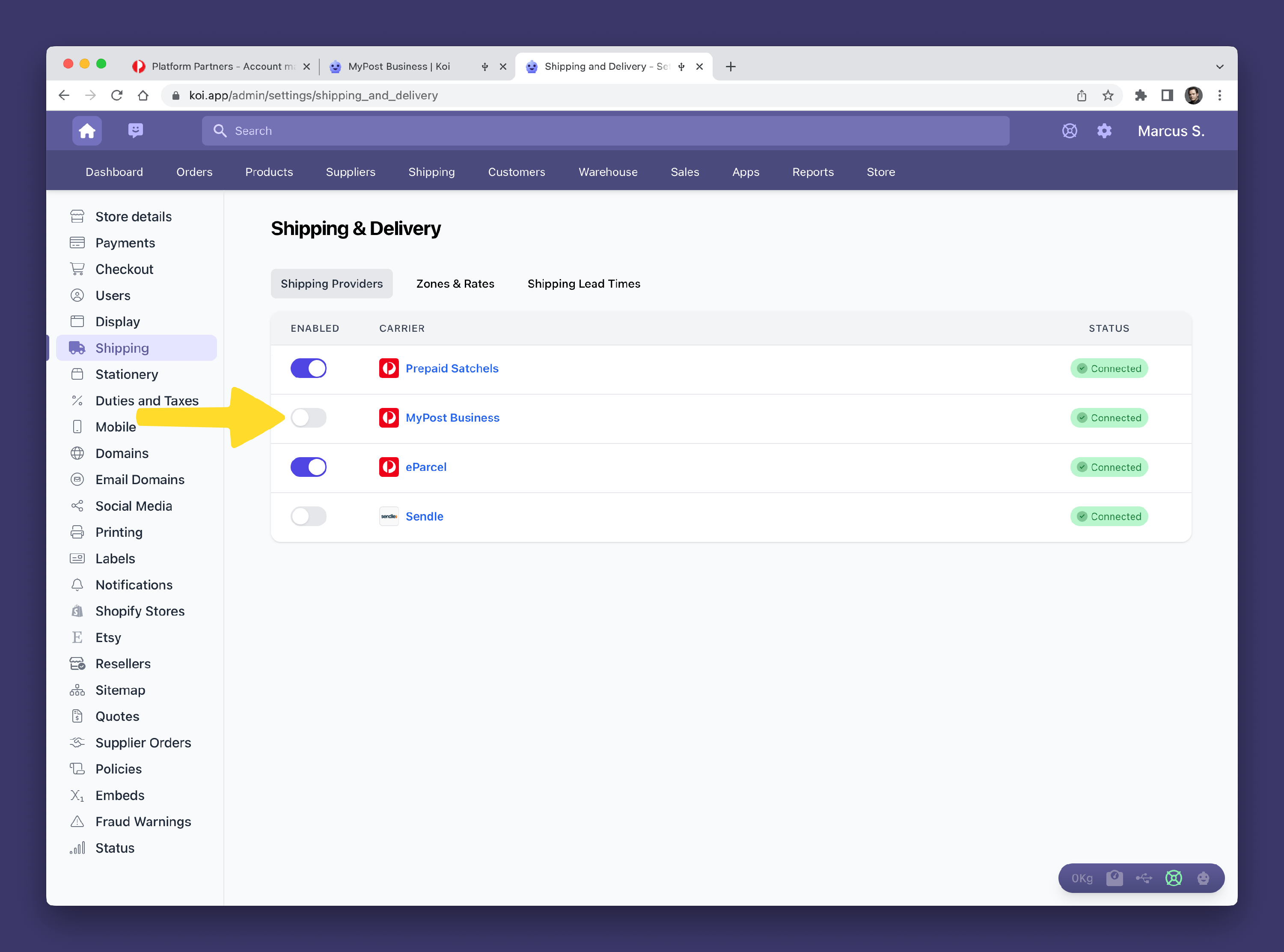 Step 2: Connecting Koi to Australia Post MyPost Business