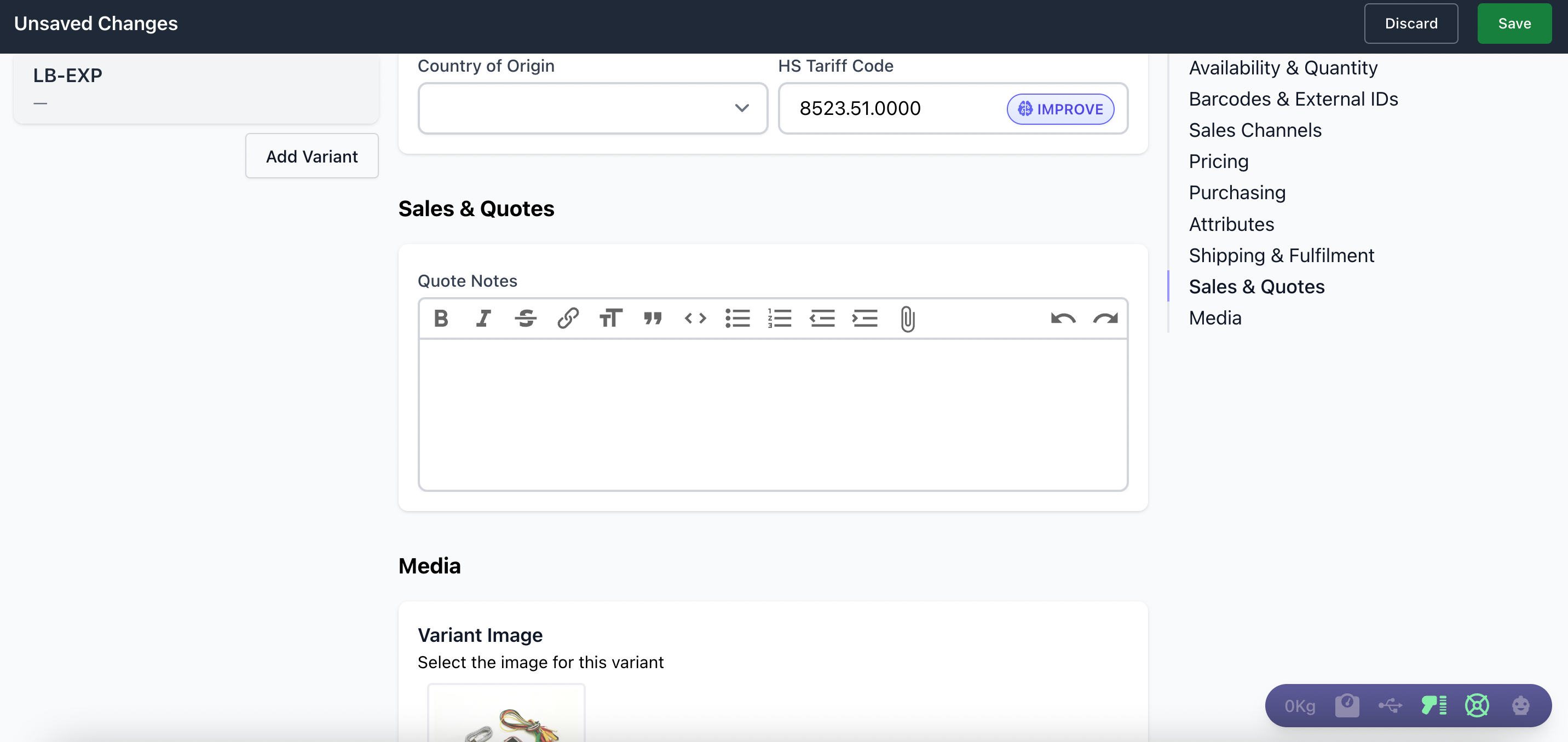 - Save the changes to update the product with the HS Tariff Code.
