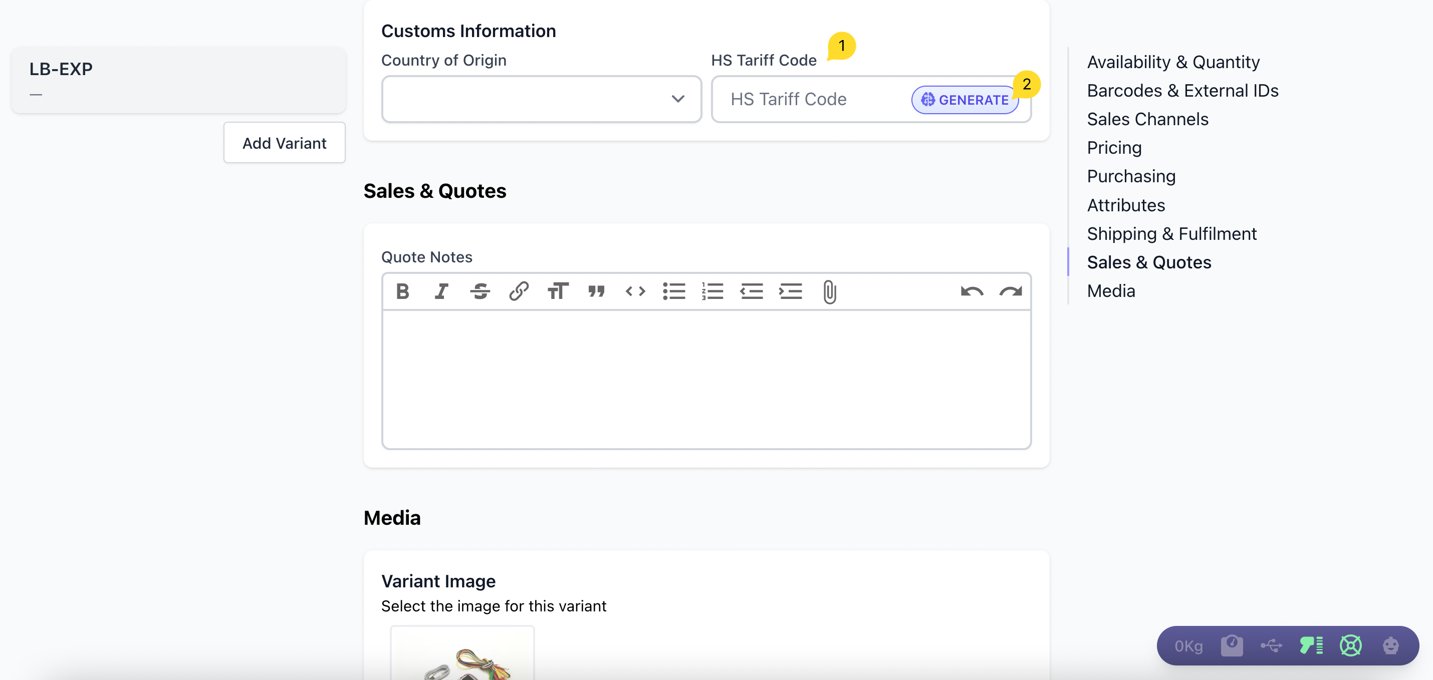 - Click on the Generate button to create a HS Tariff Code for your product in the provided field. Note: The HS Tariff Code is a standardized code used to classify products for import/export purposes.