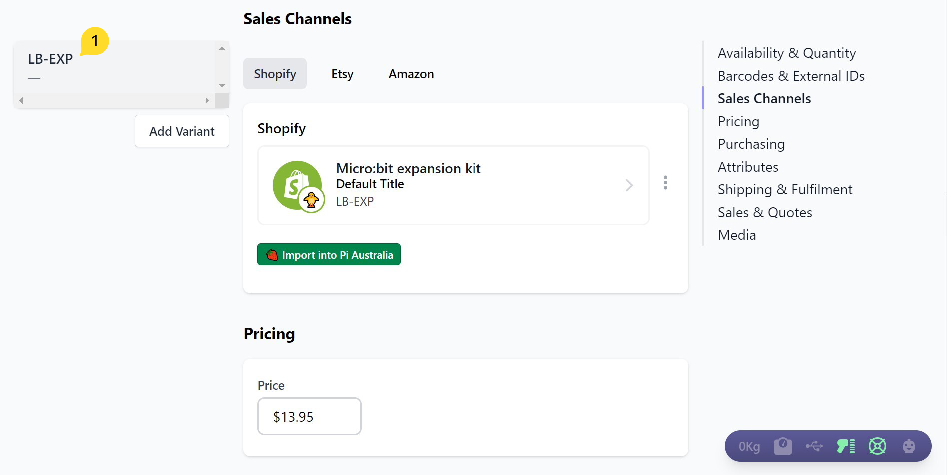 Navigate to the Product Variant