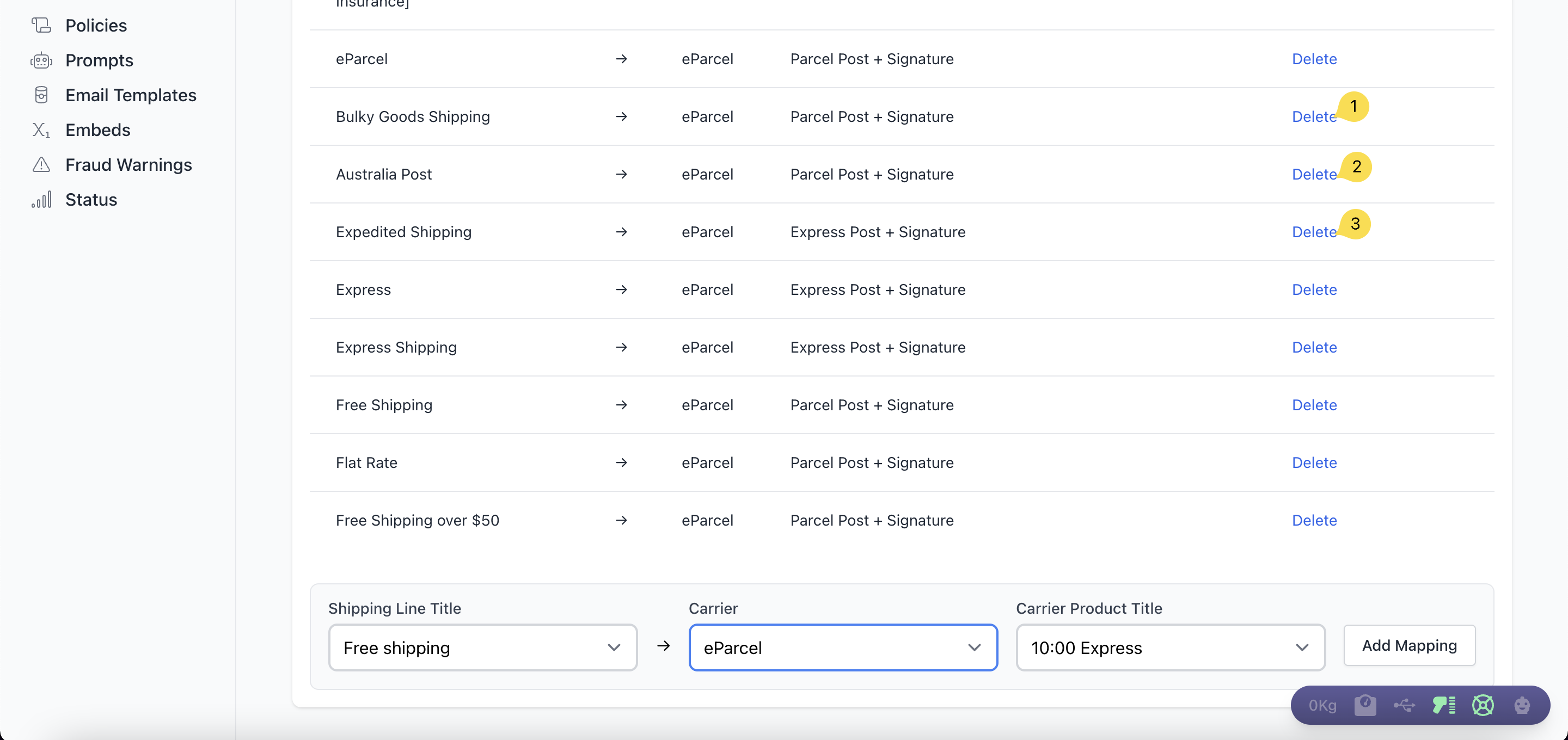 Mapping Shopify Shipping Methods to Carrier Shipping Methods