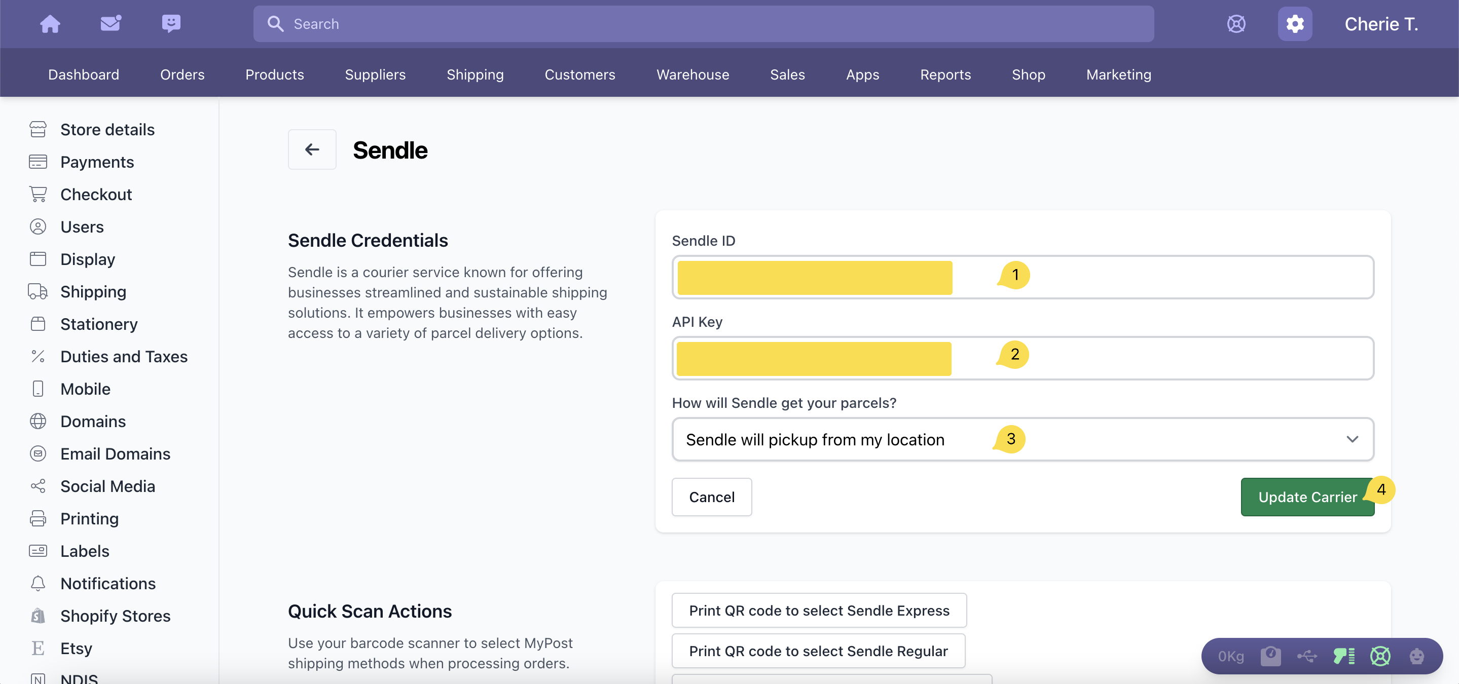 - Enter your Sendle identification number in the field titled Sendle ID