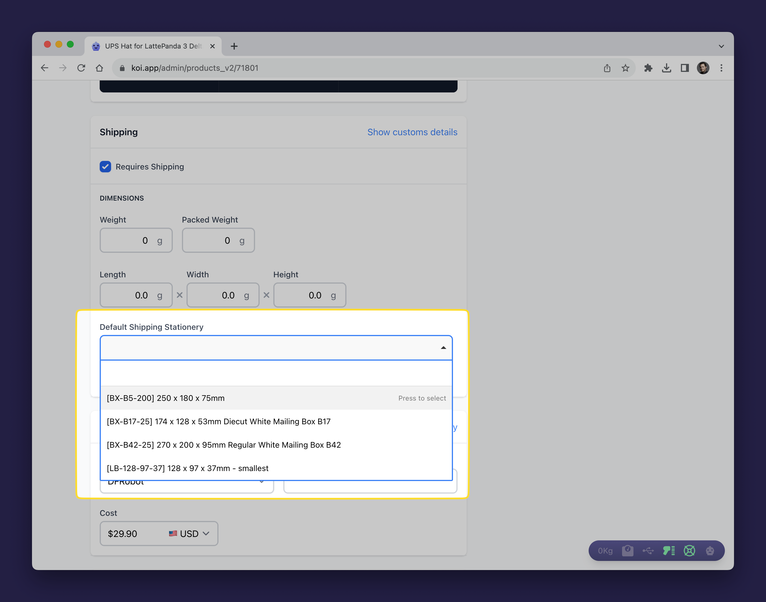 You can set the default stationery to use when fulfilling a product variant under the "Shipping" card of a product variant.