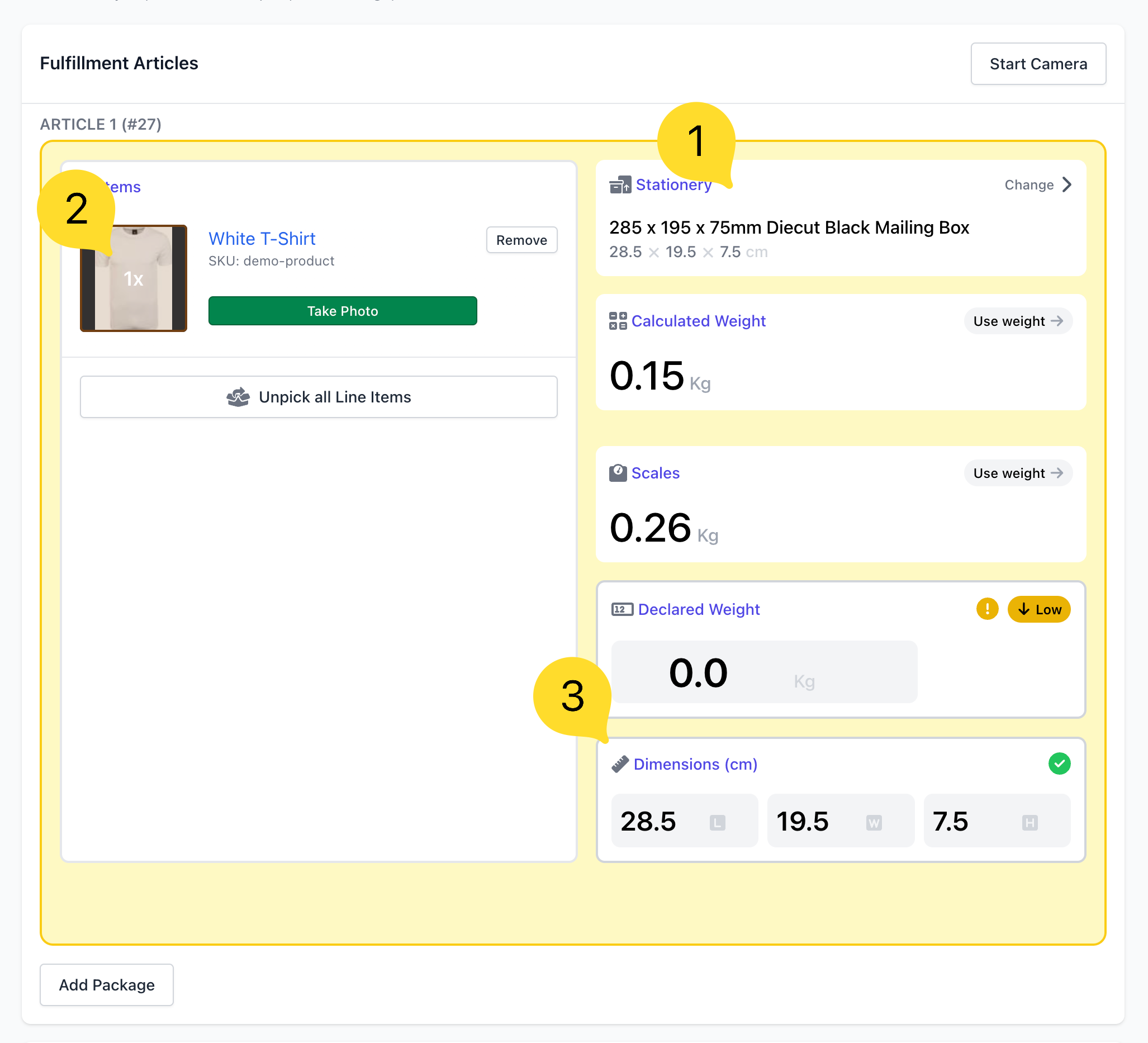 - The declared dimensions 3️⃣ for the fulfilment article are either all zeros or set to a default value.